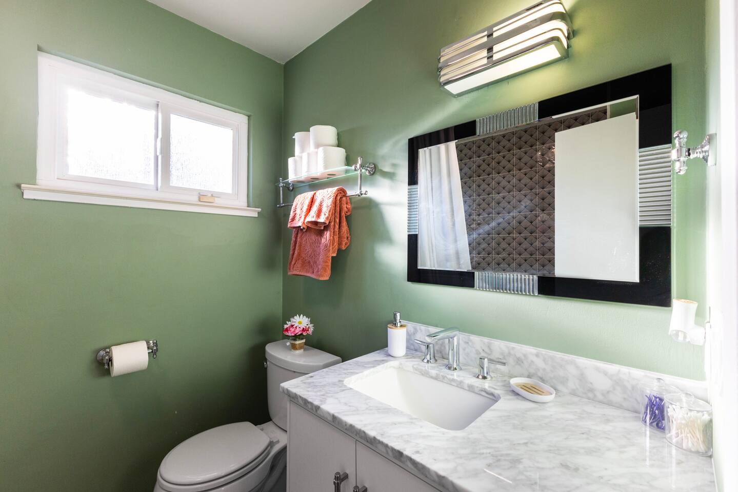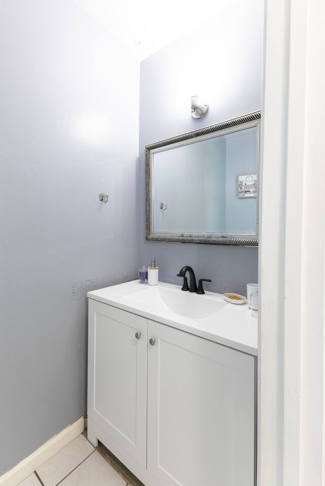 You will be able to access all shared spaces like the kitchen, living room, dining room, backyard, front yard, and laundry room in garage. Guests who book this room share 1 full bathroom upstairs and a half bathroom downstairs with 2 other travelers.